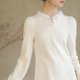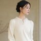 新中式中國風 袖口织金 水滴v领双面羊绒感上衣 - 女装上衣 - 其他材质 白色