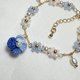 主花以日本金票蕾丝线钩织而成,选用天蓝与雪白交错的配色,仿佛春日晴空下轻柔绽放的小野花。