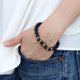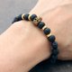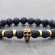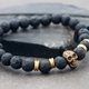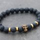 这款手链是由哑光成品熔岩珠,氧化黄铜和弹性松紧线制成的。