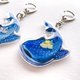 - 手绘水彩图案,双面彩色压克力夹层印刷不掉色, 正面滴胶圆润饱满,背面闪亮雷射碎片效果 高约6.5cm