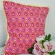 北欧风格桃红黄色几何花图案,黄色小毛球抱枕/靠枕