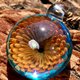 由于看的角度和光源的影响光辉和色彩变化。玻璃吊坠背面方面使用着透明蓝色的颜色玻璃