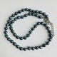 这是一条日本制造的玻璃巴洛克珍珠项链,采用日本工匠的精湛技术,在玻璃巴洛克珠子上涂上多层我们原创的珍珠漆。采用全结工艺完成,在每颗珍珠之间小心地添加结。珍珠颜色为藏青色黑珍珠,质地细腻,光泽柔和。带有轻微蓝色调的黑珍珠色。珍珠尺寸直径约6毫米,长度为标准公主尺寸约42厘米。尾部设有调节器,可延长约 5 厘米。