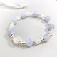 /产品故事/ 蓝纹玛瑙淡雅细致的蓝纹相间,优雅细腻,搭配月光石显得清爽透亮,衬托出甜美气质 。