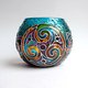 Celtic Spirals Glass Candle Holder Tealight Holder Turquoise Purple Votive
