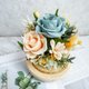 **花材|**主花为不凋玫瑰花(永生花),配花含不凋绣球花与其他不凋花材与叶材