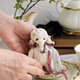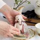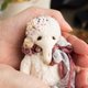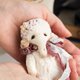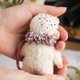 我制作这个系列的目的是为了春天、和平和希望。对于大象,我选择了白色的德国黏胶作为希望和祈祷和平的象征。尽管有战争,但仍然有爱和梦想的空间。我用捷克珠子和珍珠装饰了大象,它们看起来非常精致。大像很小,随身携带或放在架子上很方便。大像有一个盘关节,它们可以转动头部,但不能转动四肢。每个玩具都有它的包包和护照。
