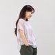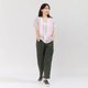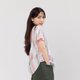 打破了傳統條紋的單調感,這件上衣在柔和的粉綠與粉紅間游走,帶出一種不造作的夏日清新。