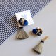 - 手工串珠 施华洛水晶 银蓝色流苏 日本抗敏耳针 耳环/夹式耳环