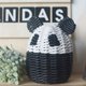 This box with lid will be nice home decor. A wicker lidded basket with a bear's ears is a funny gift idea for an animal lover. This small black-white wicker box can be used as small jewelry storage, candy box, or other small stuff storage basket. Also, this panda decor will add a happy mood to your scandi nursery or kid's room.