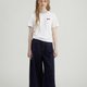 三色植绒爱心百搭短袖 T 恤,经典直身小版型轻松驾驭修饰比例,整体廓形微宽松松弛有度。窄边领口小圆领精致百搭。前片衣身撞色小爱心选用植绒工艺,简洁有趣。后中活页设计搭配撞色圆形纽扣别致细节。