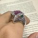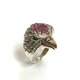 Victorian Style Eagle Head Ring with Ruby and Emerald Stone 925 Sterling Silver