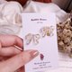 蕾丝蝴蝶结耳环 尺寸:2cm 加入蕾丝小花、珍珠、金碎石,简约的蝴蝶结款式,很适合日常配戴 ●耳夹为螺旋耳夹 ●耳针为钢针+硅胶耳堵