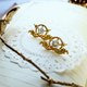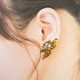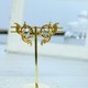 以特别的金属压花片及金色齿轮组成的耳环显得高贵动人,其中的水钻更是增添了不少光辉。