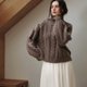 北歐風復古絞花紋高領毛衣版型寬松,藏肉又顯瘦,