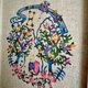 这幅画框描绘了从斜坡上看到的森林远处的猎户星座,采用冲绳传统的红型染色技术制作。