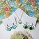 例如:绿蠵龟3号色耳针一对、彩橘方款耳夹一对、黝黑项链一条
