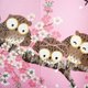 可爱的猫头鹰乐也融融地并排在一起欣赏樱花,可爱疗愈。