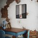 大家猜一下这幅画的水泥墙我是用什么素材?我是用咖啡粉。因为我很想要做出很像的水泥墙。前年我生病了,原本电影的工作也因为疫情停摆,然后因为我是血癌,加上我又没有保险,庞大的医药费压力、长期治疗导致的忧郁,其实这个水泥墙是我每天起床看到的天花板,起床后我都看着这个天花板,并且感到绝望。后来我开始种植物、做我自己的艺术创作,那个盼望的光才真的照进来。现在的我,不只是在这里参展,也包括世伦邀请我去帮他们的民宿做空间设计,之前 Julia 也邀请我跟法国艺术家的设备艺术做联名的植栽展出,而且一年前当我把我个展的画全都完售后,就支付完我所有的医药费。生命有很多可能性,只要我们不放弃。