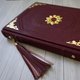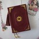 - Cherry color handmade faux leather journal with golden trim and painted pages. Fully handmade stitched and designed notebook. A great gift for a stylish lady. Free shipping!