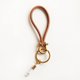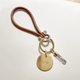 马蹄形黄铜扣搭配天然牛皮绳钥匙圈。黄铜钥匙圈直径约3cm,牛皮绳带长约9cm,粗犷的造型让天然的材质更显出个性。