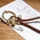 🔺 **/ 黄铜马蹄扣牛皮绳米雕钥匙圈 /**