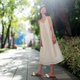 ‘ LOVEMYSELF ’小清新.米色条纹细肩洋装 ◆ 细肩带设计,延伸V领前襟造型 ◆ 轻透质地打造小清新优雅风格 ◆ 裙摆微微A字体,展现女人味