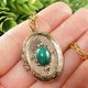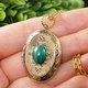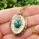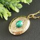 绿色孔雀石相片夹坠项链。金色椭圆夹坠项链。薄荷深绿宝石夹坠项链。维多利亚风格复古珠宝项链。秘密许愿盒。绿石吊坠项链。手工制作,男女皆宜。给她或给他的难忘礼物。