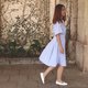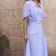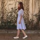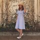 女装蓝白色条子高质布料 腰索绳 连衣裙
