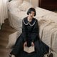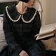 木耳花邊娃娃領+愛心排扣點綴,給人一種溫柔甜美的感覺