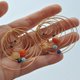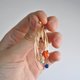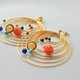 这款“太阳系”耳环由我在工作室中手工制作,使用金镀金金属线与色彩鲜艳的石珠,象征太阳系中的行星。