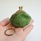 零钱包,钩织小包,绿色钱包,珠饰扣环包,钥匙圈