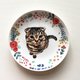 采釉下彩绘制,表面透明釉经1230度高温烧制,可作为食器使用。