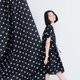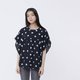 Lora 荷叶袖圆领宽版上衣/黑白水玉