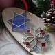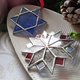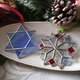 两片式玻璃雪花挂饰。适合圣诞树或窗户的圣诞装饰。简约彩绘玻璃。蓝色梅尔卡巴玻璃星星。新年树饰。圣诞树饰。温馨圣诞礼物送给朋友。彩绘玻璃圣诞星星。