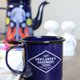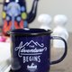 深蓝色的杯身,正反面有着不同的图案,把手有着蓝色线条点缀,加上杯子底部的指南针图案,更显得这个杯子与众不同。