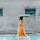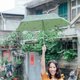伞布颜色收纳时是墨绿,打开后衬着阳光,就变身为抹茶色,