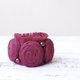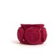 Wrist cuff fabric bracelet made from deep red vintage fabric with three rolled rosettes, decorated with pearl beads in the same color. Closes with plastic button and silicone loop.