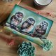 原木盒完全是手绘的。 艺术家安娜的一种。 三只可爱的猫头鹰正坐在树枝上。 是送给动物和大自然爱好者的绝妙礼物。 包装精美。 没有锁的木箱有一个方便的盖子。 看起来现代而舒适。 适合存放首饰或一些值得纪念的东西。