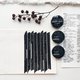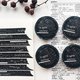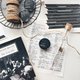 突然想起小时候看萤火虫的印象,黑漆漆的树林里会有无数的小亮点飞来飞去,我们截取夜晚萤光的概念,再结合擅长的英文手写字与底片齿孔效果, 制作出黑、白两款系列纸胶带,特制细版 1 厘米的宽度,配上黑与白基本款色调,让大家在拼贴上可以更得心应手。