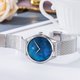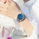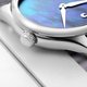 珍珠贝母表面呈现深邃蓝色,突显蓝色海洋醉人之景。随配戴者活动,反射出引人入胜之幻彩蓝光。尤如在水底中,带来千变万化的美感。天然纹理令每只腕表呈现不一样的幻彩效果。令腕表整体构图更为赏心悦目。