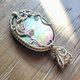 黑蝶贝吊坠,材质为银色艺术铜线,吊坠本体尺寸(长x宽)为57x27mm。