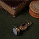 吊坠来自法国1880年代,整体以18K金打造,两侧镶有石榴石装饰,火漆章底部为缟玛瑙。