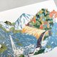 这片风景画的是位于屏东的神山瀑布,因地理位置和环境的关系,让这里被称为是秘境。在抵达瀑布前会经过蜿蜒的下坡阶梯与没有扶把的天桥,这里有个保护山林的守护者传说,守护者无所不在却不会让你看见,像精灵般的存在于各角落,如果你随意破坏,秘境将会与你一同消失。