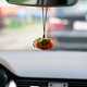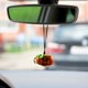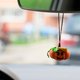 Stuffed pumpkin is a cute accessory on the car mirror. It is small enough to not be distracting but still noticeable. The crocheted suspension does not knock on the windshield while driving and is safe during emergency braking.