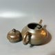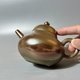 圆润的身形,天然柴火釉色像阳光下的古铜色,温润有光泽。壶盖上的钮很可爱,优雅又稳定。
