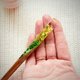 木质发簪,点缀黄色小花。 全长 - 192 毫米 材质:木材、环氧树脂、真实蓝色小花