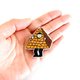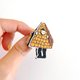It is an embroidered brooch of a person wearing a pyramid's costume.