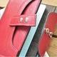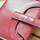 **樱桃红色牛皮+内里深咖啡色猪里皮**