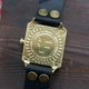 表壳、龙头与表带头均为手工蜡雕铸造黄铜研磨而成,油皮(牛)表带,全新不伤真皮表带架构设计